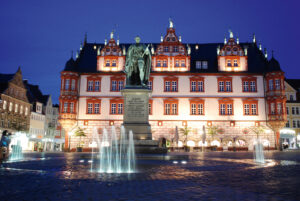 Warm und wohlig wird es bei einem heißen Getränk in einem der gemütlichen Cafés der Stadt. Zum Tee oder Kaffee passt perfekt ein Coburger Schmätzchen – ein würzig-süßes Honiggebäck, das an Lebkuchen erinnert. Der Legende nach wurde es einst erfunden, um Damen auf besonders charmante Weise mit einem süßen Küsschen zu bedenken. Herzhaft kann Coburg natürlich auch: Eine original Coburger Bratwurst vom Rost ist Pflicht. Am historischen Marktplatz duftet es verführerisch, wenn sie frisch gegrillt über den Tresen geht.