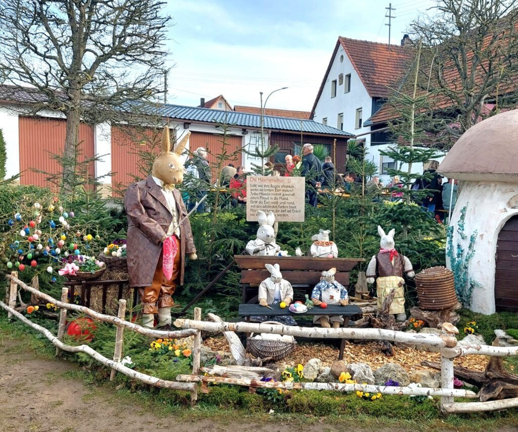Startpunkt der Rundtour ist der Wanderparkplatz in Egloffstein. Schon im Ort lohnt sich ein erster Blick, denn auch hier schmückt ein Osterbrunnen die Szenerie und stimmt auf das Thema der Tour ein.