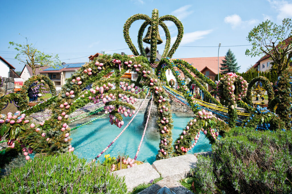 Das große Highlight der Tour wartet dann in Bieberbach: der wohl bekannteste Osterbrunnen der Region. Mit über 11.000 handbemalten Eierschalen hat er es sogar ins Guinness-Buch der Rekorde geschafft.