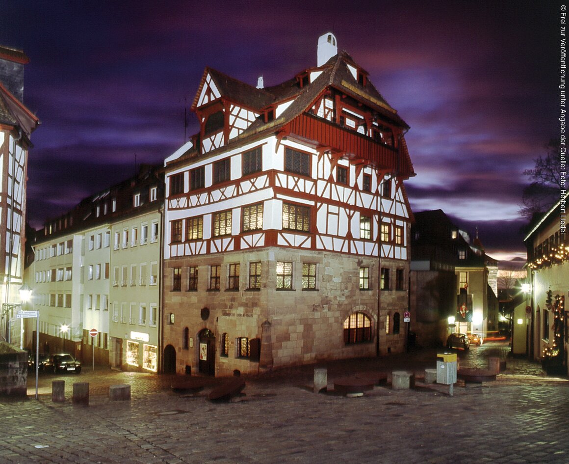 Doch Dürers Vermächtnis ist auch außerhalb des Germanischen Nationalmuseums deutlich spürbar. Das merkt man, wenn man etwa auf dem „Dürer-Weg“ in die Fußstapfen des Meisters tritt. Er beginnt am Germanischen Nationalmuseum und führt quer durch die Nürnberger Altstadt bis zum Albrecht-Dürer-Haus in unmittelbarer Nachbarschaft zur Kaiserburg. Ausgerüstet mit einem Mini-Computer erschließt sich in Bild und Ton, wie Dürer mit der Stadt, ihrer Architektur, ihrer Kunst und ihrer Geschichte verbunden ist. Wer am Dürer-Haus angekommen ist, sollte sich einen Besuch nicht entgehen lassen.