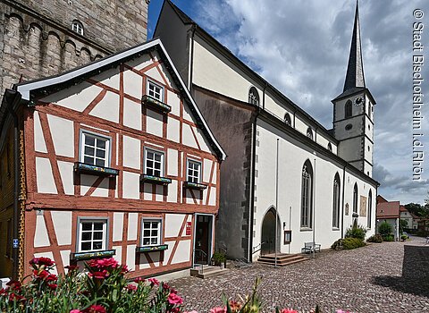 Die Kernstadt von Bischofsheim ist in Form des so genannten „Fränkischen Rundlings“ angelegt. Die stetigen Grenzstreitigkeiten zwischen den Äbten von Fulda und den Bischöfen von Würzburg waren wohl ausschlaggebend dafür, dass Bischofsheim zu einem befestigten Platz ausgebaut wurde. Bei einem gemütlichen Spaziergang auf dem Altstadtrundgang & Holzskulpturenweg können Sie romantische und verträumte Ecken, beispielsweise entlang der historischen Stadtmauer, ausfindig machen und sich auf eine „kunsthistorische Entdeckungstour“ begeben. Das Wahrzeichen von Bischofsheim, der spätromanische Zentturm aus dem 13. Jh., das historische Rentamt, die älteste Holzschnitzschule Deutschlands und die zahlreichen Holzschnitzereien sind weitere Besonderheiten. Besuchen Sie uns und erleben Sie die Rhöner Gastfreundschaft!