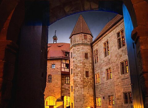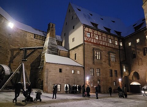Innenhoföffnung der Cadolzburg zum Adventsmarkt