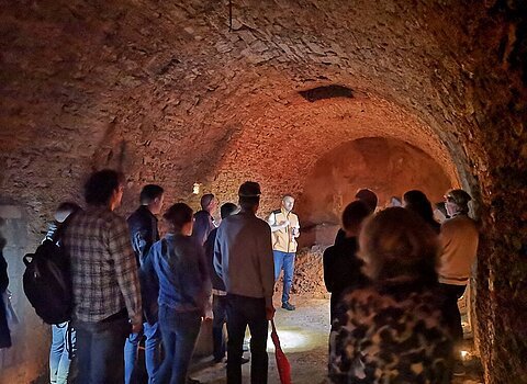 Ein Spaziergang durch die verwinkelten Gässchen der historischen Innenstadt erlauben einen kurzen Blick auf die vielfältige Geschichte von Kitzingen. Gegründet wurde das Kloster „Chitzzinga monasterium“ 745 durch Hadeloga und dem ersten Abt von Fulda, Sturmius. der Sage nach, war Hadeloga eine Tochter des karolingischen Hausmeiers Karl Martell. Die Klosterfrauen, die das Kloster führten errichteten auch den „Alten Klosterkeller“, der die Rolle Kitzingens als Weinhandelsstadt dokumentiert. 1482 wurde in Kitzingen das älteste deutsche Weingesetz erlassen. Der Wein trug zum Einfluss und zum Reichtum der Stadt bei und spielt seither immer wieder eine wichtige Rolle in der Entwicklung der Stadt. Um die Jahrhundertwende war Kitzingen eine bedeutende Weinhandelsstadt. Dem Thema Wein begegnet man bei einem Besuch in Kitzingen natürlich ständig, sei es bei einer schönen Weinbergswanderung, z.B. dem "Kitzinger Weinwanderweg", in Kitzingen-Repperndorf, der über die landschaftlichen Besonderheiten sowie den Weinanbau in der Region informiert oder einem Ausflug zur Vinothek der GWF (Winzergemeinschaft Franken e.G.), der größten Winzergemeinschaft Bayerns. Weingenuss in seiner schönsten Form mit den "Best of Franken"-Weinen bietet von Ende April/Anfang Mai bis Mitte Oktober der StadtSchoppen am Stadtbalkon direkt am Main, immer donnerstags bis sonntags.