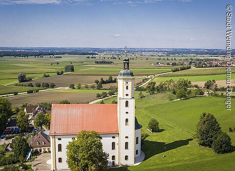 Die Altstadt ist als Denkmalort ausgewiesen und wird „behütet“ von der Stadtmauer aus der ersten Hälfte des 14. Jahrhunderts mit ihren Toren, Türmen und dem Wallgraben. Der in sich geschlossene Marktplatz mit seinen stattlichen Bürgerhäusern und dem historischen Rathaus lädt zum Verweilen ein und ist Mittelpunkt der Stadt. Bedeutende Männer prägten die Stadt und wer auf ihren Spuren wandeln will, entdeckt die Geburtshäuser von Leonhart Fuchs (ihm zu Ehren wurde die Fuchsie benannt), Johannes Scheyring (Mann auf dem alten 1000-DM-Schein) und Johannes von Roth, dem 1. Reichskanzler des Hl. Röm. Reiches Dt. Nation und Bischof von Breslau. In der Stadtpfarrkirche St. Emmeram gibt es Arbeiten von Dominikus Zimmermann zu bewundern. Ein besonderes Juwel ist die Wallfahrtsbasilika Maria Brünnlein mit dem einzigartigen Brunnen- und Quellenaltar und dem Deckengemälde von Johann Baptist Zimmermann. "Maria Brünnlein" ist eine der bedeutendsten Wallfahrtskirchen in Süddeutschland. Die Altstadt von Wemding erstrahlt als Fuchsienstadt von Mai bis Ende September im Glanz farbiger Fuchsien. Jährlich Ende Mai ist in der Altstadt ein großer Fuchsien- und Kräutermarkt. Zwischen Tourist-Information und Stadtpfarrkirche St. Emmeram direkt neben dem Marktplatz steht mit einer Höhe von 5 Metern und bestückt mit über 700 Fuchsien die größte Fuchsienpyramide der Welt. Die Pyramide ist Teil des beliebten Fuchsienrundgangs durch die Altstadt. Am Besten Sie erkunden die Vielfalt dieser reichen Natur- und Kulturlandschaft mit dem Fahrrad. Das ausgedehnte Radwander-Wegenetz führt Sie meist abseits von asphaltierten Straßen entlang vieler Sehenswürdigkeiten und blühender Wiesen.