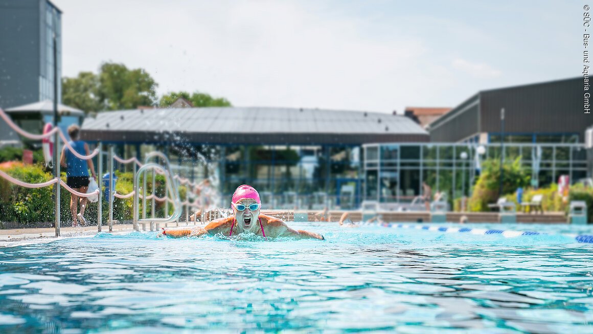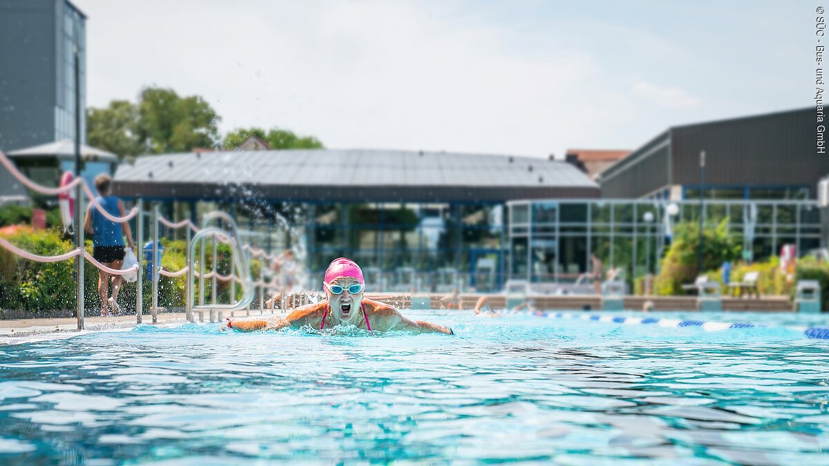 Die Vielfalt an Attraktionen umfasst eine Riesenrutsche, einen Strömungskanal, ein Sportbecken, Kinderbecken und Planschbecken. Im Außenbereich warten verschiedene Becken und Wasserattraktionen, ein großer Kinderbereich sowie eine Liegewiese auf sportbegeisterte Gäste.