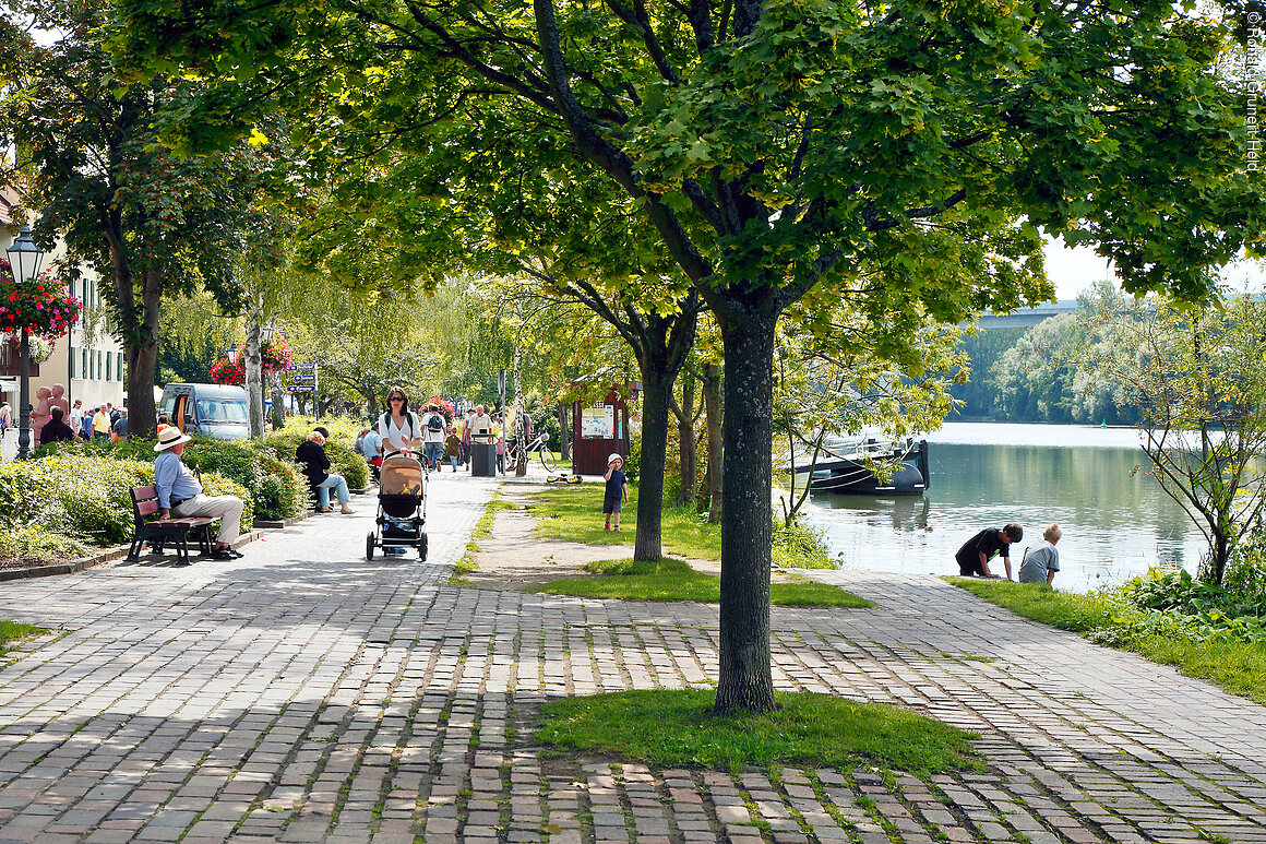 Fast südländisches Urlaubsflair genießt man bei einem Spaziergang an der Uferpromenade Mainlände in Veitshöchheim.