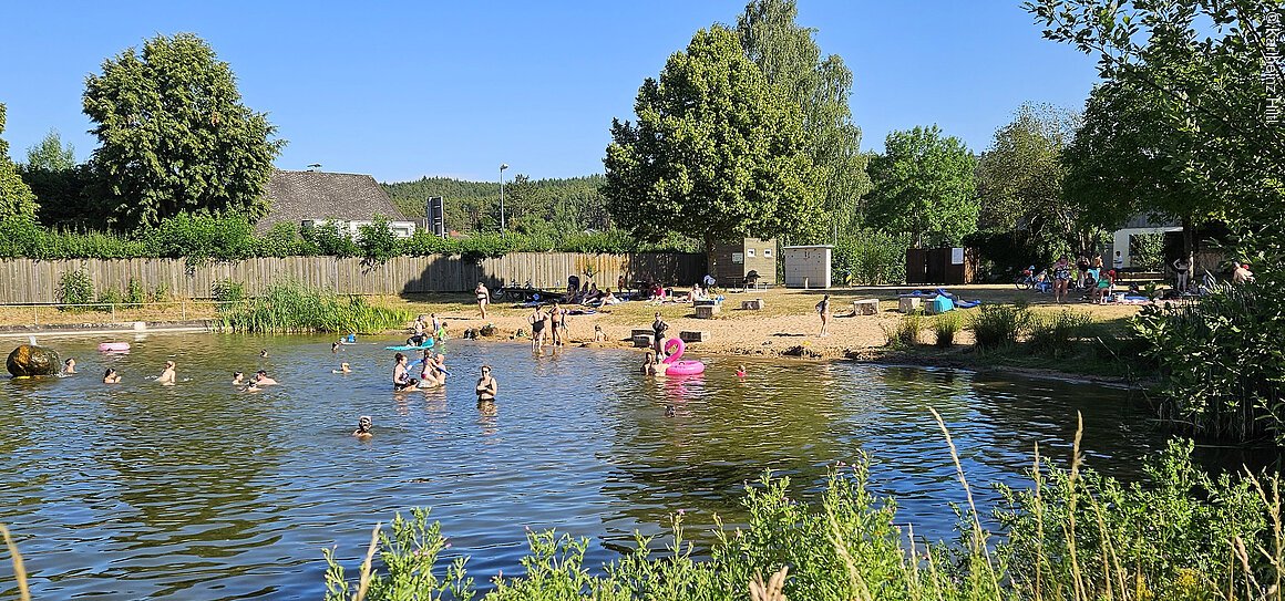 Der Naturbadeweiher lädt in den Sommermonaten zum kostenlosen baden ein. Sanitäreinrichtungen sind vorhanden. Kaffee und Einkaufsmöglichkeiten in direkter Umgebung.