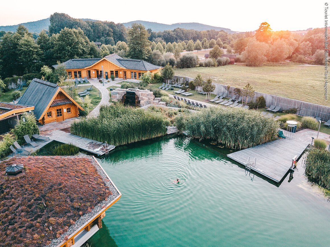 Das mehrfach ausgezeichnete Premium-SaunaLand der Obermain Therme ist nicht zuletzt bekannt für seine besonders hochwertigen Aufgüsse und sucht in puncto Größe, Vielfalt und Schönheit seinesgleichen. Freuen Sie sich unter anderem auf 11 Themensaunen, luxuriöse Ruhe- und Loungebereiche und einen riesigen Naturbadesee.