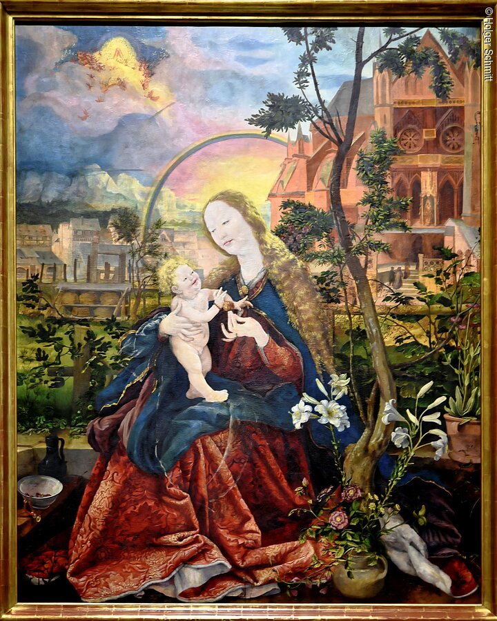 Wohl kaum ein Marienbild in der Welt ist wundersamer in den Tönen seiner Farben, verhaltener und erregender in seinen Zeichen, umfassender und dichter in der Sprache seiner Symbole als dieses Marienbild von Matthias Grünewald.
