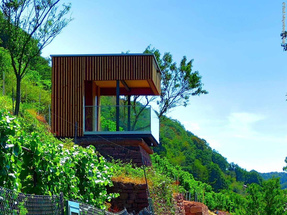 Die Winzer sind die „Bergbauern“ Frankens: Das wird klar, wenn man das terroir f Churfranken besucht. Gebildet wird es von den atemberaubenden Terrassenweinbergen in Klingenberg am Main und Erlenbach am Main. Zwei überdimensionale Mauersteine am „Fränkischen Rotweinwanderweg“, die nur wenige Schritte auseinanderliegen, stehen hier für das Thema „Steillage, Buntsandstein und Sonne – des Winzers Gold“. In strahlendem Gold und im Rot der hier typischen Spätburgunder-Rebe ergänzen sie harmonisch die durch die Terrassen geprägte Weinlandschaft.