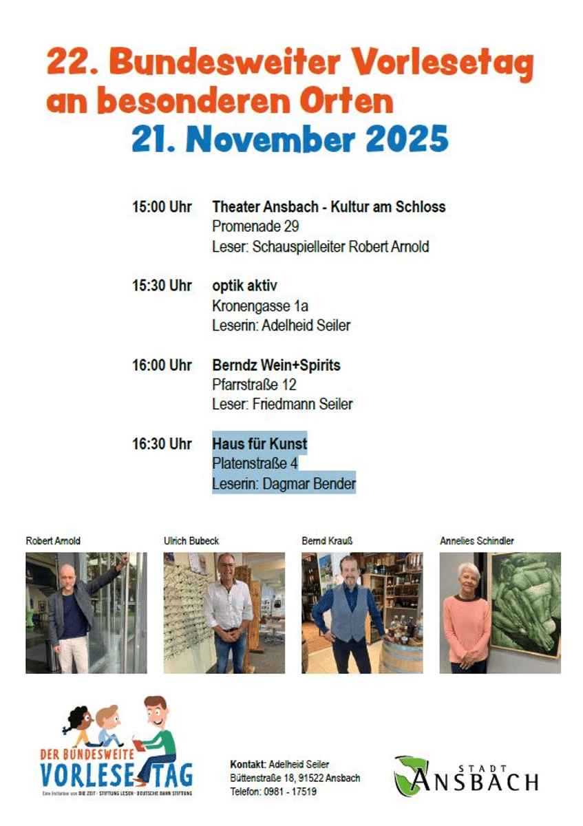Am 21. November 2025 findet der Bundesweite Vorlesetag zum 22. Mal statt. Das Motto unseres diesjährigen Aktionstages: Vorlesen spricht Deine Sprache. Es unterstreicht, wie vielseitig Vorlesen ist und zeigt gleichzeitig, dass jede einzelne Sprache und Stimme zählt. Denn Geschichten schaffen Verstehen, fördern den Austausch, stärken das Miteinander und legen die Grundlage zum Lesenlernen. Das Motto hebt die verbindende Kraft des Vorlesens hervor und sendet eine klare Botschaft: Nutz Deine Sprache, nutz Deine Stimme und lies vor!