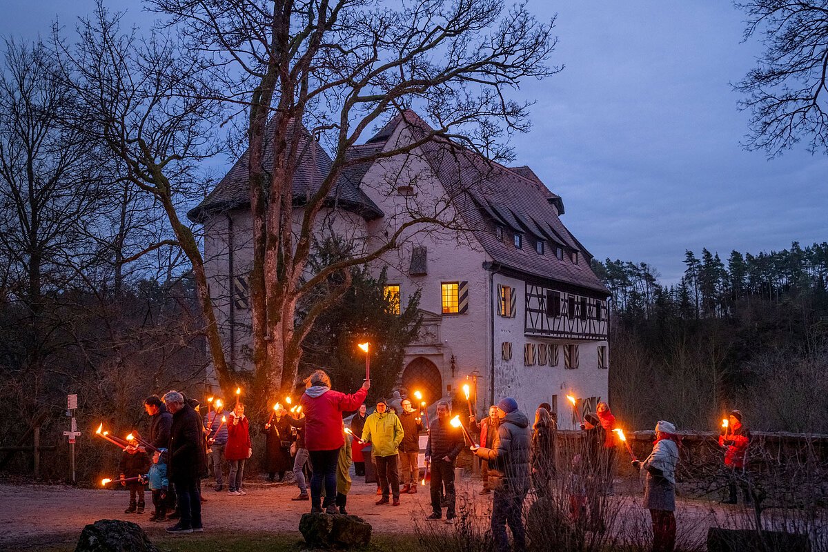 Treffpunkt ist um 17.00 Uhr der Vorhof der Burg Rabenstein, wo Sie mit Glühwein empfangen werden. Nach ca. 10minütiger geführter Fackelwanderung erreichen Sie die Sophienhöhle, deren unterirdischer Tropfsteinpalast mit dem Sonderprogramm „Sophie at night“ auf Sie wartet. Im Anschluss servieren wir im Markgrafensaal und Jagdzimmer der Burg ein herzhaftes 3-Gänge-Burgmenü.