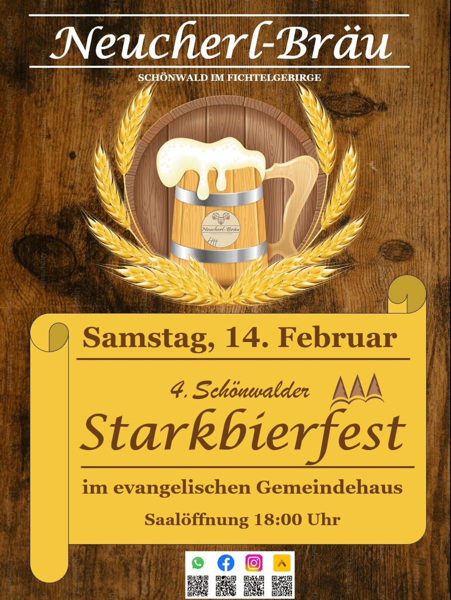 Am Samstag, 14. Februar findet der 4. Starkbieranstich im evangelischen Gemeindehaus Schönwald statt.