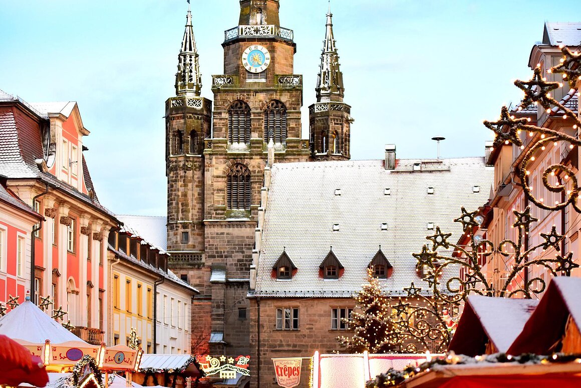 Zwischen den beiden stadtbildprägenden Kirchen St. Johannis und St. Gumbertus findet seit jeher der Ansbacher Weihnachtsmarkt statt.