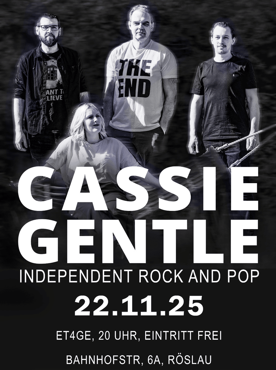 Am 22. November 2025 spielt die Band Cassie Gentle im ET4GE in Röslau.
