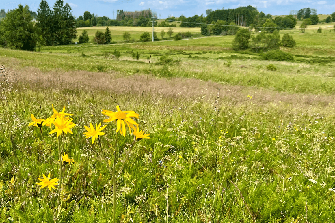 Die Teuschnitz-Aue ist ein Naturjuwel im Naturpark Frankenwald. Bärwurz und Arnika wachsen auf den mageren Wiesen und das selten gewordene Braunkehlchen findet Platz zum Brüten. Bei der Rundwanderung durch Bergmähwiesen und Borstgrasrasen, vorbei an Hochstaudenfluren und Rinderweiden erfahrt ihr, wie die Wiesen gepflegt werden müssen, um diese Artenvielfalt zu erhalten.