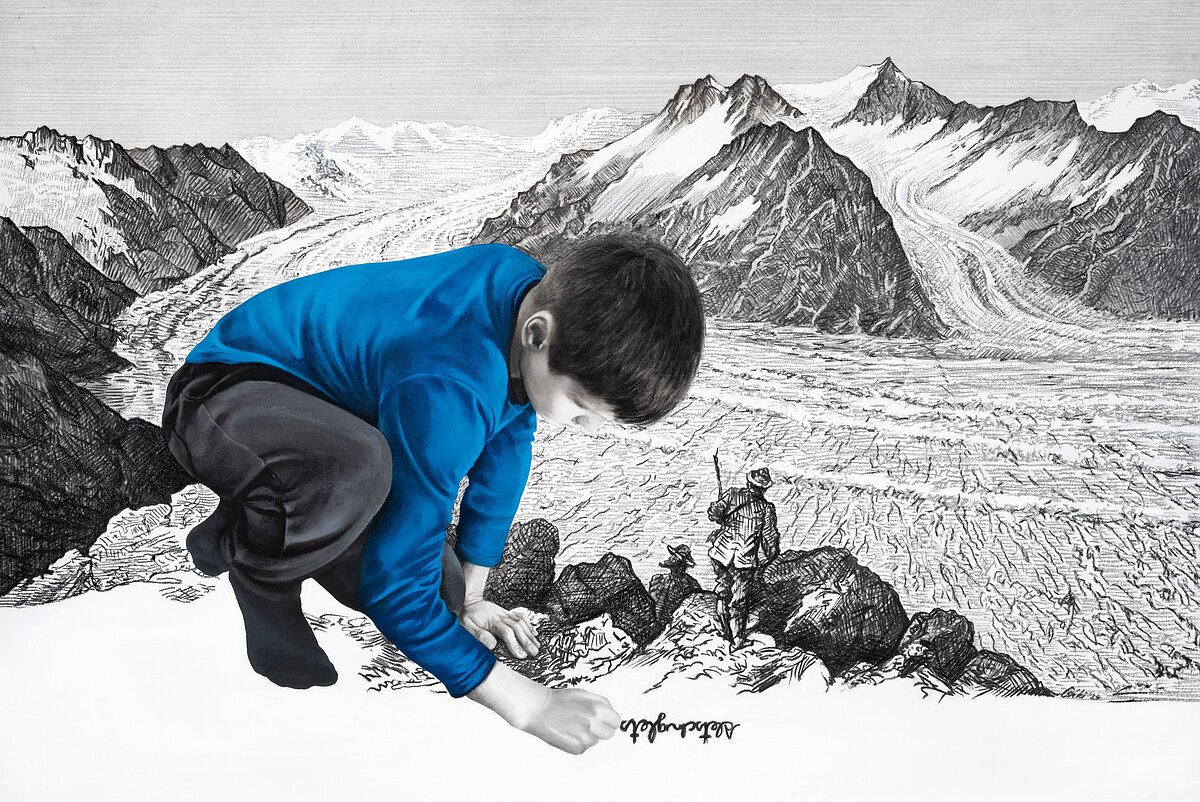 Die Ausstellung thematisiert nicht allein die Schönheit der Bergwelt und die Erhabenheit, die von schneebedeckten Gipfeln und eisigen Gletschern ausgehen, sondern veranschaulicht auch die Bedrohung, der dieses Naturparadies ausgesetzt ist.
