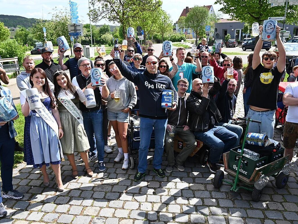 Eine bierige Überraschung erwartet alle Fußgruppen, die traditionsgemäß mit Leiterwagen um 10 Uhr am Volksfestzelt am Festplatz Spalt eintreffen.
