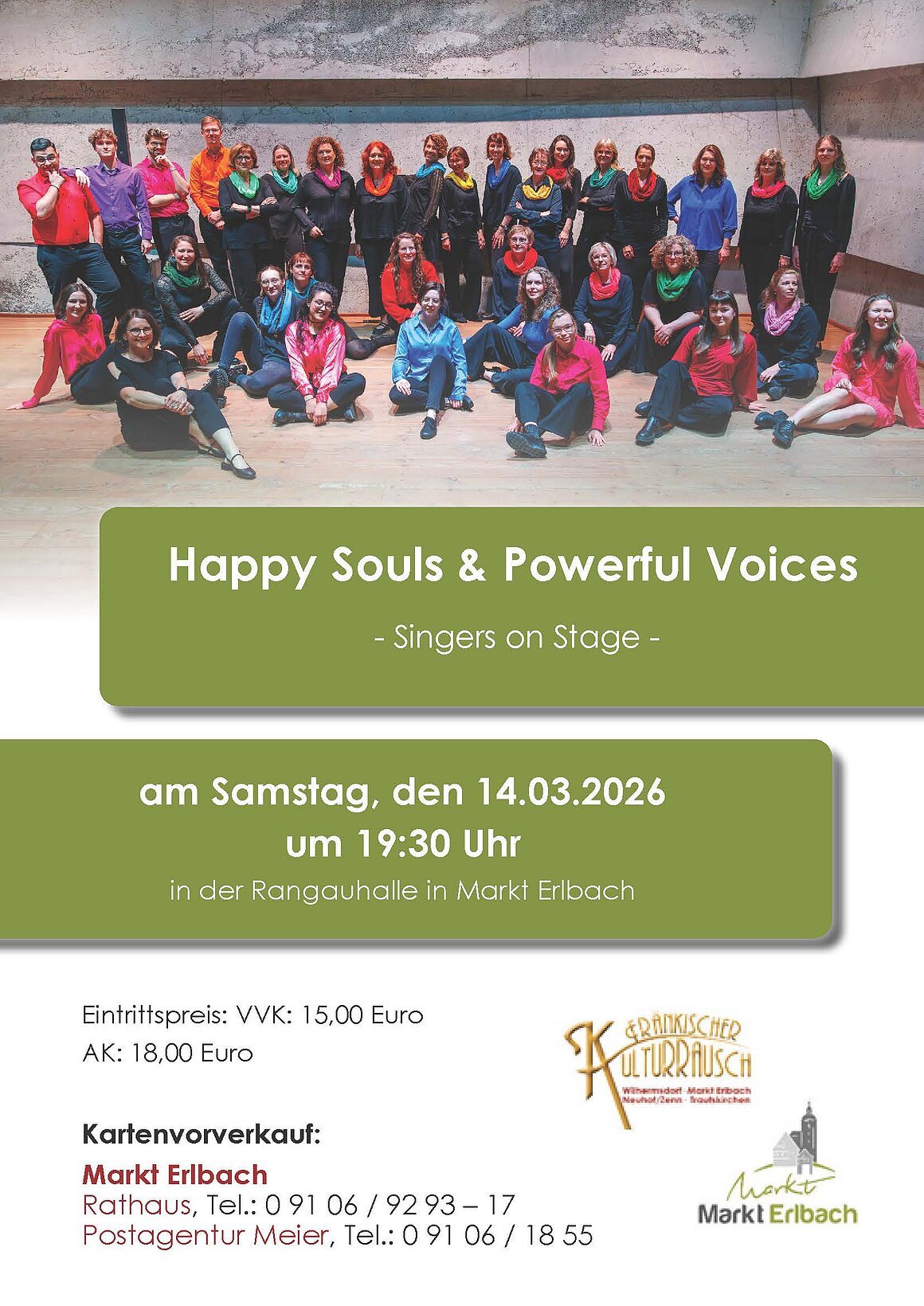 In der aktuellen Konzertsaison haben sie sich einige Gastmusiker mit ins Boot geholt und legen energetisch noch eine Schippe drauf. Lassen Sie sich von den sympathischen Happy Souls und Powerful Voices begeistern!