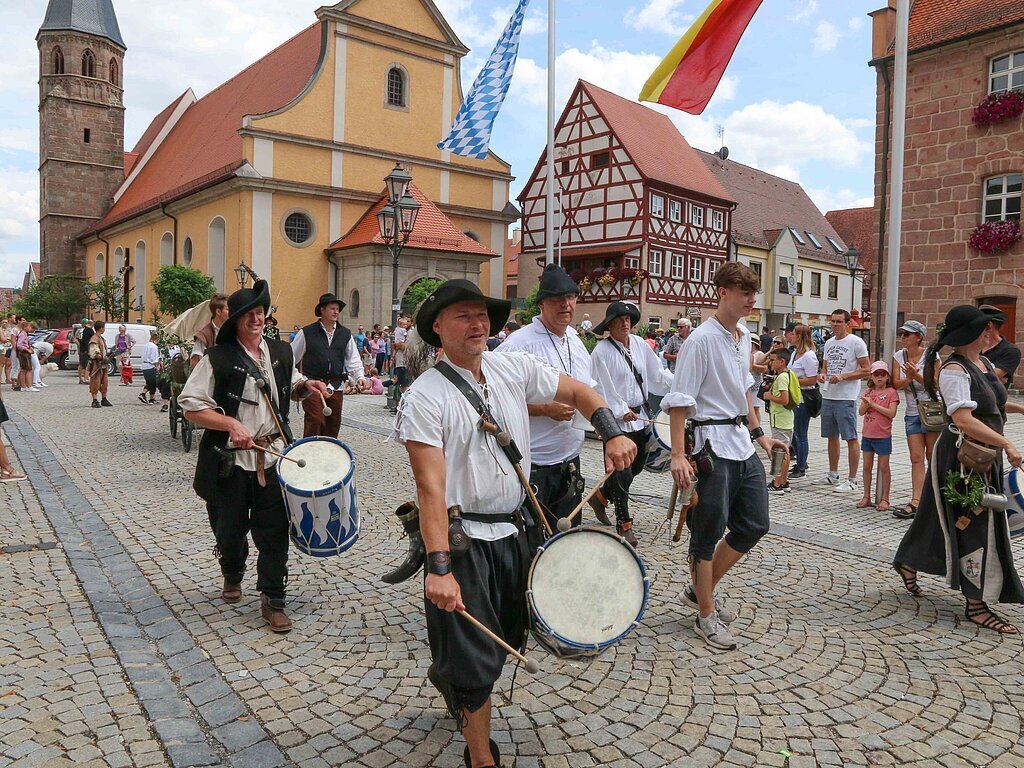 Feilschen und ein spritziger Wettbewerb stehen am Samstag auf dem Programm. Der Trödelmarkt lockt viele Kinder und Jugendliche, aber auch Erwachsene zum Marktplatz. Nicht ganz so gemütlich geht es beim Fischerstechen zu, wenn die „Gladiatoren des Wäschweihers“ versuchen, ihre Gegner mit einer langen Lanze ins Wasser zu befördern.