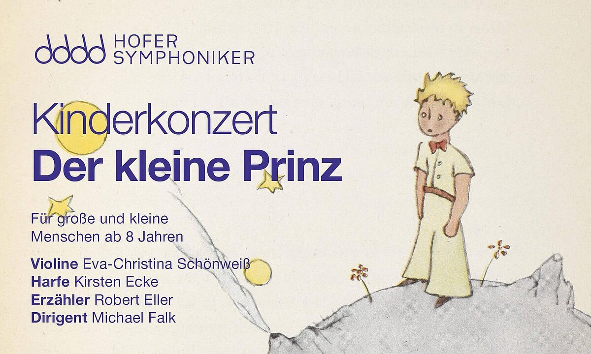 Im Jahr 2008 schrieb der französische Komponist Jean-Pascal Beintus eine Konzertsuite für Violine, Harfe und Kammerorchester zu Saint-Exupérys „Kleinen Prinzen“. Auf die traumhafte Konzertreise mit wunderbar-einfühlsamer Musik können sich Menschen ab 6 Jahren am Sonntag, 19. April 2026, um 11 Uhr im Festsaal der Freiheitshalle Hof begeben. Unter der „Reiseleitung“ des Dirigenten Michael Falk spielen die Hofer Symphoniker. Gemeinsam mit der Geigerin Eva-Christina Schönweiß und der Harfenistin Kirsten Ecke zeichnen sie mit feinen Linien die einzelnen Charaktere wie die Blume, den Fuchs oder die Schlange genau nach. Erzählt wird die Geschichte des Kleinen Prinzen von dem Schauspieler Robert Eller.