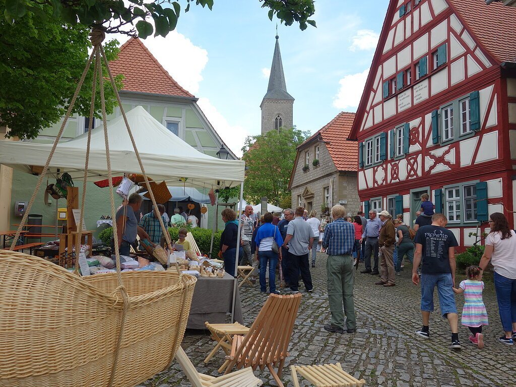Die Handwerker und Künstler bieten ihre handgearbeiteten Waren in den Gaden und um die Kirchenburganlage in Hüttenheim an. Direktvermarkter und Winzer präsentieren ihre erzeugten Produkte in den Höfen.