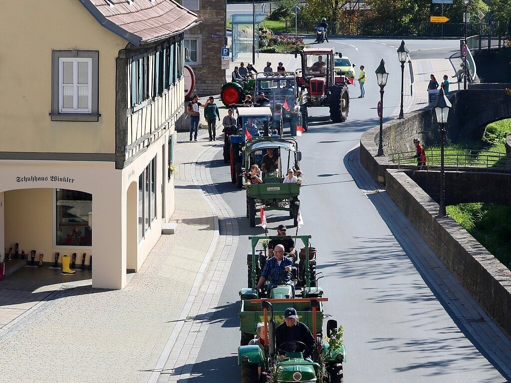 Um 13:45 Uhr führt ein Festzug bestehend aus Erntewagen, Weinberggeräten, Oldtimer-Traktoren und musikalischer Begleitung von der Weingartenstraße über die Bamberger Straße, Am Bach entlang zum historischen Rathaus, durch die Bohnmühlgasse bis zum Marktplatz, wo er mit einem Bremserausschank endet.