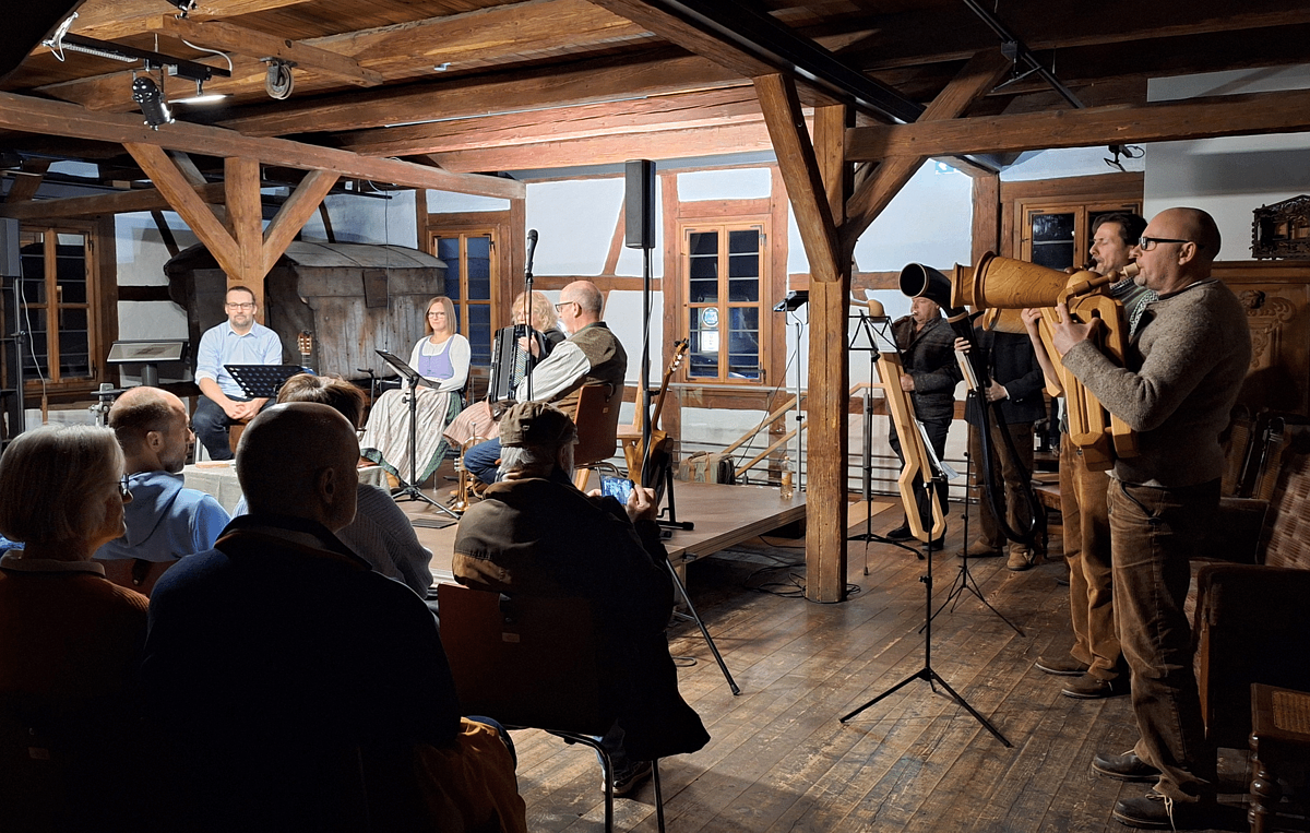 Mit ausgewählter Musik und rührigen Texten zu Lichtmess unterhalten auf amüsante Weise die Gruppe „Kauderwelsch“ abwechselnd mit den „Vogelhorn-Bergmusikern“.