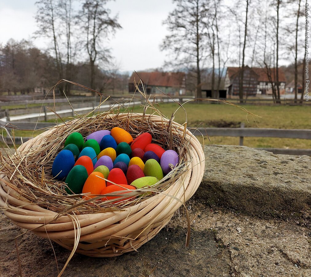 Mit dem Frühling zieht auch im Fränkischen Freilandmuseum Fladungen wieder Leben ein. Das erste Highlight im Veranstaltungskalender: Das Osterprogramm, 2026 erneut mit der Eiersuche in der Hofstelle aus Leutershausen!