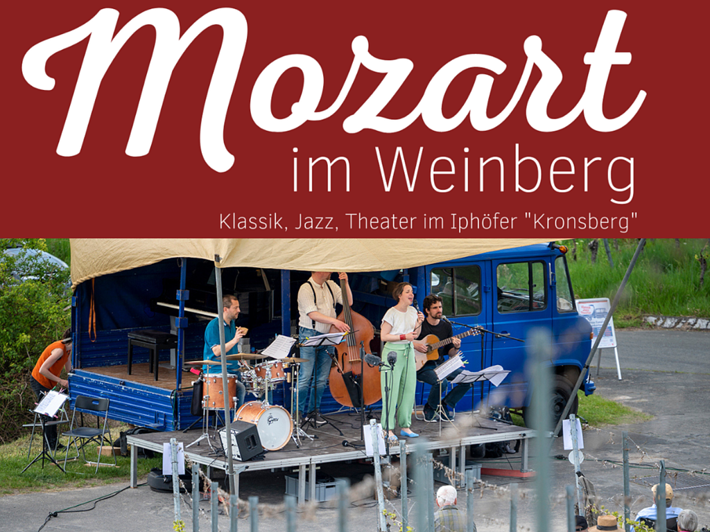 Die Seele baumeln lassen können Sie bei Mozart im Weinberg. Im gewachsenen Amphitheater des Kronsberges veranstaltet der „Blaue Eumel – Mobile Kunst e. V.“ mit dem Weingut Wirsching ein 1,5-stündiges Konzert auf dem „Blauen Eumel“ mit 11 grandiosen Künstlern. Der Blaue Eumel ist ein blauer Oldtimer-LKW, der mit einem Konzertflügel beladen ist und sich in kürzester Zeit in eine wunderbare kleine Bühne verwandelt, um Musik und Theater direkt zu den Menschen und an ungewöhnliche Konzertorte zu bringen.