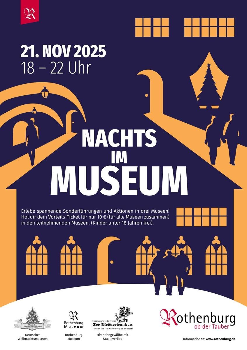 Am 21.11.2025 erleben Sie drei wichtige Ausstellungen Rothenburgs von einer ganz besonderen Seite: ab 18 Uhr laden das Deutsche Weihnachtsmuseum, das Historienverlies im Rathaus sowie das RothenburgMuseum zur „Langen Nacht der Museen“. Bis 22 Uhr erleben die Besucher die Museen von einer etwas anderen Seite.
