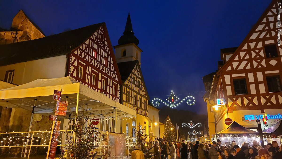 Der Pottensteiner Winterzauber stimmt am ersten Adventswochenende auf die bevorstehende Weihnachtszeit ein. In der festlich geschmückten Altstadt laden Marktstände, winterliche Kulinarik und ein stimmungsvolles Rahmenprogramm zum Bummeln, Verweilen und Genießen ein.