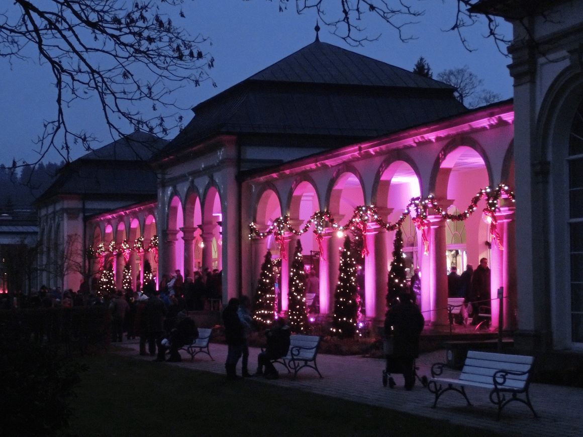 Wenn der Kurpark im festlichen Lichterglanz erstrahlt und sich der Duft von Glühwein, heißen Waffeln und Bratwürsten ausbreitet, dann ist wieder Zeit für den romantischen Weihnachtsmarkt in Bad Steben. Am zweiten Adventssamstag, 6. Dezember 2025, verwandelt sich der historische Kurpark ab 13 Uhr in eine stimmungsvolle Weihnachtswelt, die Groß und Klein auf die schönste Zeit des Jahres einstimmt. Vor der Kulisse aus Wandelhalle, Kurhaus und Klenzebau präsentieren Händler aus Nah und Fern ein vielfältiges Angebot an handgefertigten Geschenkideen, Dekorationen und kulinarischen Köstlichkeiten. Ob Accessoires aus Holz, Genähtes und Gehäkeltes, Schieferkunst, Duftlampen oder Wildspezialitäten – hier findet sich für jeden Geschmack das Passende. Natürlich dürfen traditionelle Leckereien wie Lebkuchen, Plätzchen und Glühwein nicht fehlen. Ein besonderes Highlight sind auch in diesem Jahr die Höllental-Alpakas, die im Kurpark für leuchtende Kinderaugen sorgen. Wer den Zauber der Adventszeit noch intensiver erleben möchte, kann sich bei einer romantischen Kutschfahrt durch das winterliche Staatsbad verzaubern lassen. Die Tickets für die Fahrten sind am Nachmittag in der Tourist-Information erhältlich. Für die kleinen Besucher gibt es rund um ein knisterndes Lagerfeuer die Möglichkeit, Marshmallows zu rösten. Und natürlich darf auch der Nikolaus nicht fehlen, der sich über Gedichte oder Lieder der Kinder freut. Um 15 Uhr laden die Schüler der Alexander-von-Humboldt-Grundschule Bad Steben vor der Wandelhalle zudem zu einer liebevoll vorbereiteten, weihnachtlichen Aufführung ein. Musikalisch wird der Weihnachtsmarkt den ganzen Nachmittag über von weihnachtlichen Liedern und Melodien begleitet. Für festliche Stimmung sorgen zum Auftakt des Weihnachtsmarktes Jagdhornbläser. Festlich wird es auch um 16.30 Uhr mit weihnachtlichen Klängen des Posaunenchors der evangelischen Kirche. Einen weiteren stimmungsvollen Höhepunkt dieses Adventssamstags bildet außerdem um 18 Uhr eine weihnachtliche Feuershow am Kurplatz mit dem Jongleur und Feuerkünstler Fabian Rieger. Der Eintritt ist frei.