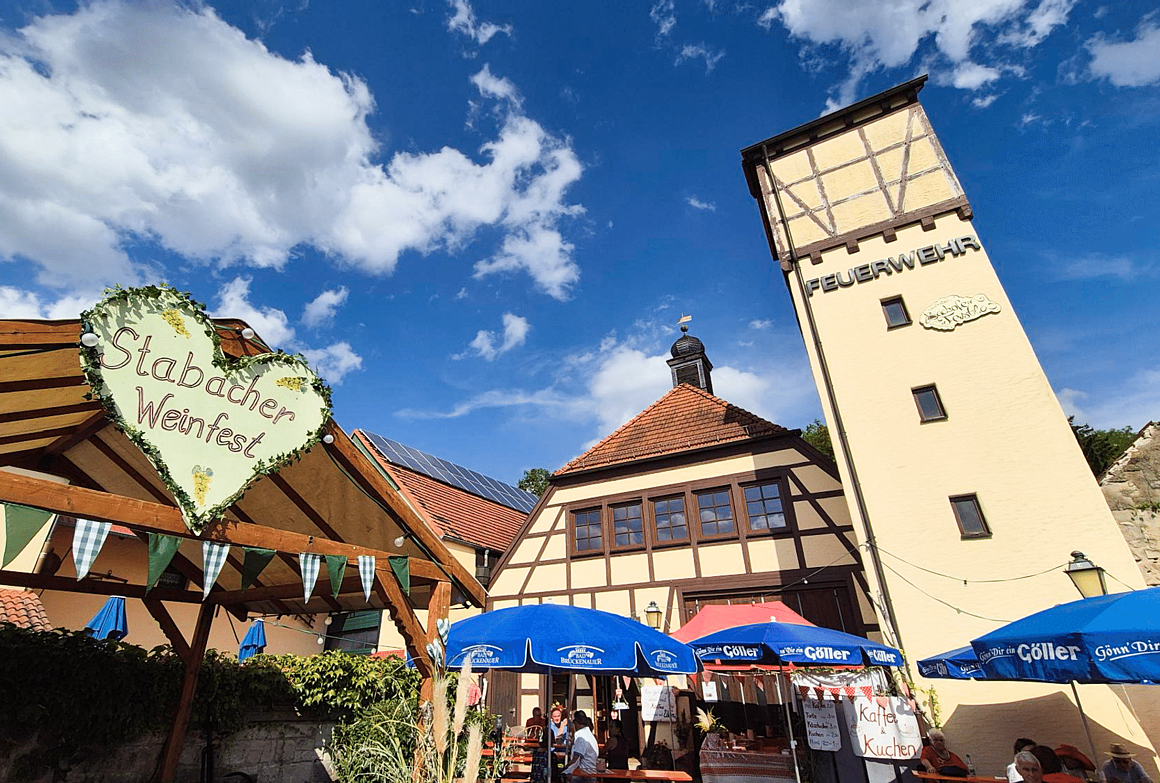 Für Liebhaber guten Weins und leckerer Köstlichkeiten ist das Stabacher Weinfest längst ein fester Termin im Jahreskalender. Der romantisch geschmückte Festplatz, das abwechslungsreiche Musikprogramm und vor allem die hervorragenden Steinbacher Weine machen das Fest zu einem beliebten Treffpunkt für Besucher aus nah und fern.