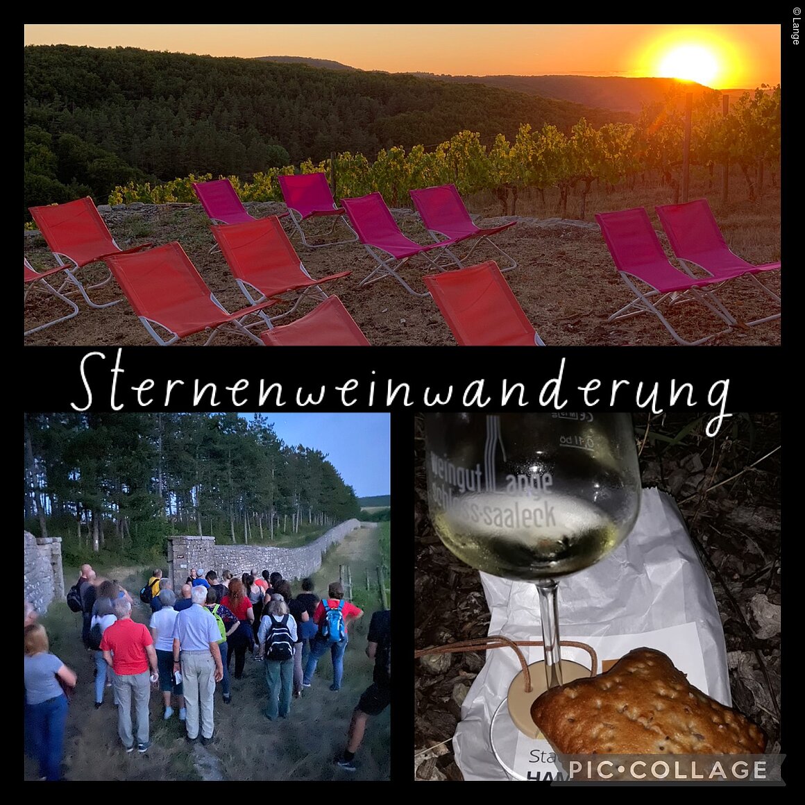 Zusammen mit dem Sternenführer wandern wir durch Flur und historischen Weinberge am Saalecker Schlossberg. Wir bekommen viele Informationen über Sterne und Sternenbilder und genießen verschiedene Weine. Am historischen Weinbergshaus setzen wir uns an auf kleine Liegen oder auf mitgebrachte Decken und beobachten mit einem Glas Wein in der Hand die Sternschnuppen des Laurentius.
