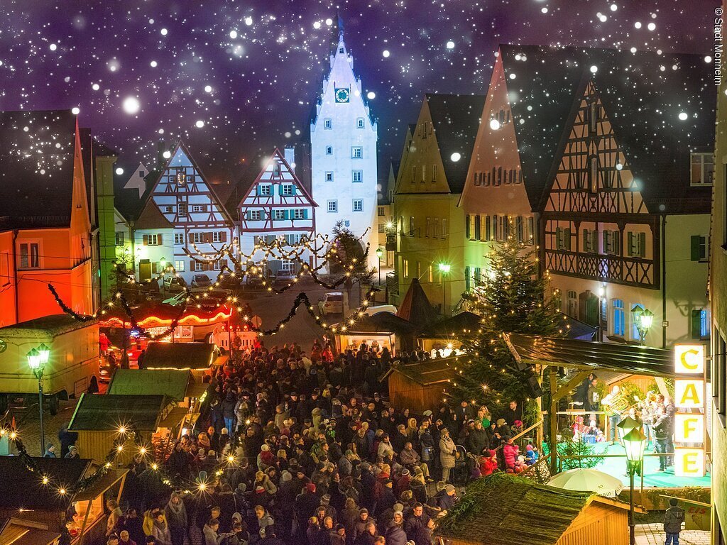 Die Stadt Monheim und die Werbegemeinschaft ProGeMo laden zu einem kleinen, aber feinen Weihnachtsmarkt vor malerischer Kulisse in Monheims historischer Altstadt ein. An den drei Tagen vor dem 4. Advent finden Besucher weihnachtlich geschmückte Marktstände mit handwerklichen und kunsthandwerklichen Produkten aus der Region, kulinarische Spezialitäten und ein abwechslungsreiches Begleitprogramm. Beim Duft von Glühwein, Gebäck und Bratwürsten dürfen die Gäste natürlich dem Christkind, aber auch verschiedenen musikalischen Mitwirkenden - wie beispielsweise der Stadtkapelle und dem Liederkranz Monheim - lauschen. Die Kleinen dürfen sich über ein Geschenk vom Nikolaus freuen!