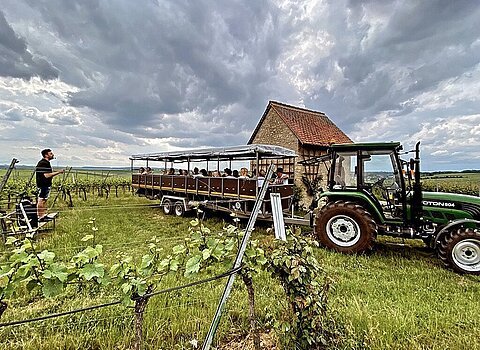 Planwagenfahrt mit Weinprobe durch die Zeilitzheimer Weinberge an der Mainschleife